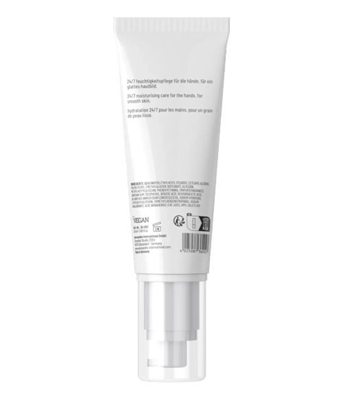 Die beruhigende und intensiv feuchtigkeitsspendende Handcreme zieht schnell ein, glättet Linien und Fältchen, verleiht der Haut Geschmeidigkeit und sorgt für einen frischen Teint. Wirkstoffe: Hyaluron & Aloe Vera für alle Hauttypen geeignet, besonders für normale & trockene Haut.